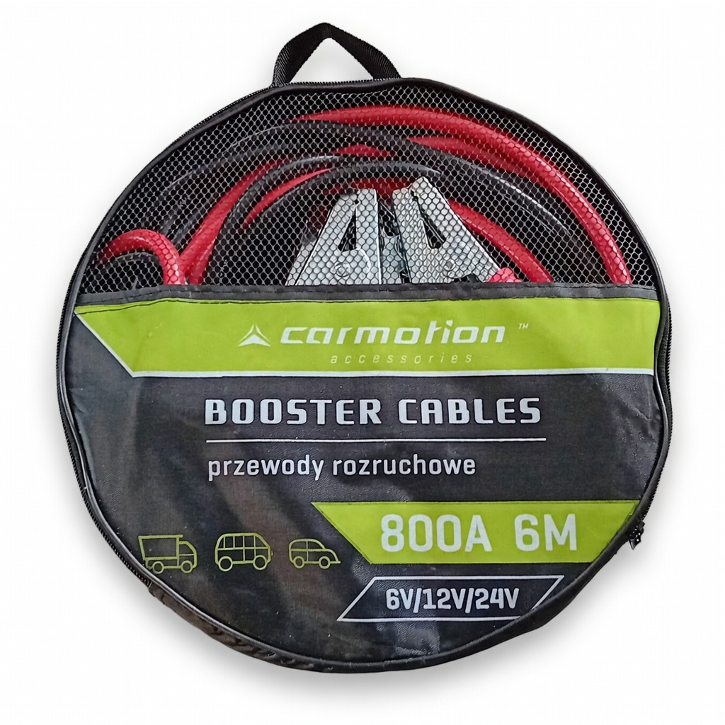 Kvalitní startovací kabely s izolovanými klešťovými svorkami, v plastikové tašce. maximální proud 800 A po dobu 5 s pro naftové motory do objemu 3000 cm3 pro osobní a dodávkové vozy Délka 5 m. Síla vodičů 35 mm2. Hmotnost 3,2 kg